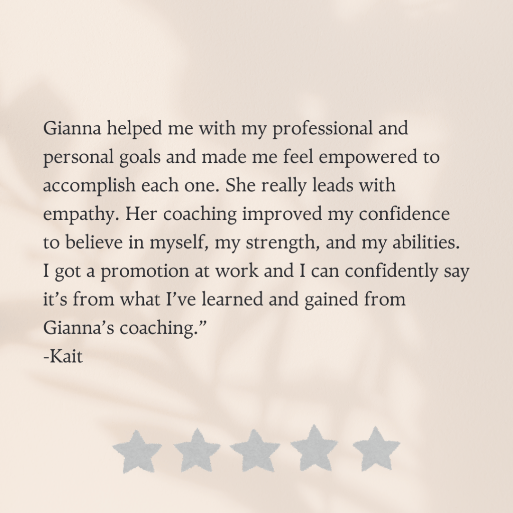 My name is Gianna, and I’m a certified Mindset Coach and Practitioner, helping clients gain confidence and empowerment by shattering limiting beliefs and reshaping behavior.