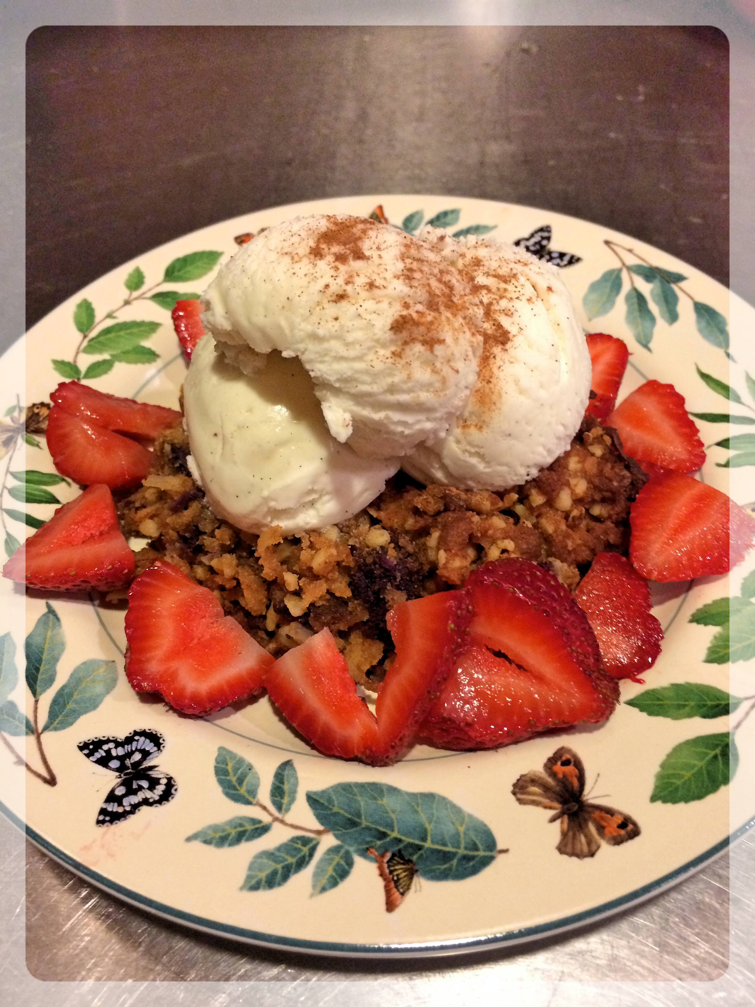 Starting new treatment this week, I needed to turn to something to lift my spirits and stay positive – so of course I turn to baking! (And wine!) I found a recipe for grain-free blueberry crisp on detoxinista.com and wanted to put my spin on it. Blueberries have always been a favorite fruit of mine, and always remind me of Summer. With a batch of ripe blueberries for this recipe, you can’t go wrong! I even spiced it up and topped the warm crisp with all-natural vanilla ice-cream.
