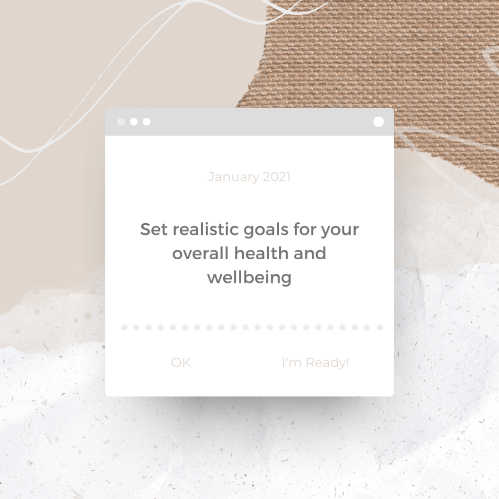 I’ve always considered January as the month of self-reflection and igniting positive change. One of the most common methods to incorporate the themes of self-reflection and positive change is the integration of goal setting. Are there any goals that you seek to accomplish in 2021? Goal setting is a healthy habit to incorporate into our daily lives. There is a perception that goal setting can be intimidating and stressful, but goal setting should not be a negative concept. Goal setting should promote growth and development, igniting positive change to promote overall wellbeing. Goals are individualized and should encompass what will make you truly feel happy and healthy, to live out your best life. No goal is too small or too big, and goal setting is not a one-size-fits-all process. It’s important to note that goals can be challenging and not all goals will be easy to accomplish. Goals that we set for ourselves can take time, patience, and perseverance to achieve results that we are proud of. Another important takeaway to note is that the goals you set out for yourself should be intended for you, and not for anyone else. For example, setting a goal for someone else’s approval is not healthy for your mental, emotional, and physical health. Keep in mind that you need to do what will truly make you happy in life, and it should not be seeking the approval of others.