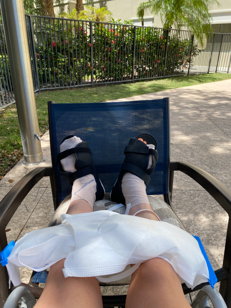 I realized this concept recently in my own recovery journey… On Wednesday, July 20th, I had a major surgery to repair a deformity that was causing a lot of pain, both mentally and physically. I had bilateral metatarsal surgery, and my left bunion was removed. The bunion removal was by far the easiest part. The metatarsal repair on the other hand, is a lot more complex. To put it in perspective, I have 6 pins on each foot and an external fixator device, working to lengthen and repair the impacted metatarsals on my feet. It was determined that the pins and fixators will not be removed until November at the earliest.